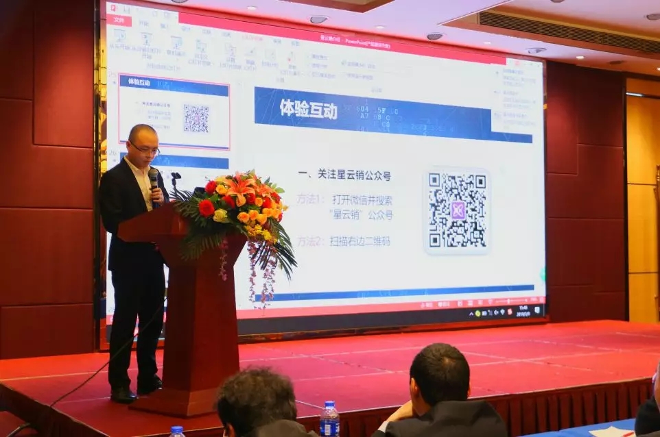 第二環節:星物聯總經理顏偉對葆德最新科研成果星云銷介紹。星云銷的核心是幫助企業實現低成本精準獲客。顏總經理還與經銷商進行了現場體驗互動,這不僅加深了經銷商對星云銷的了解,還讓他們在實操中體驗到星云銷的便捷,高效。
